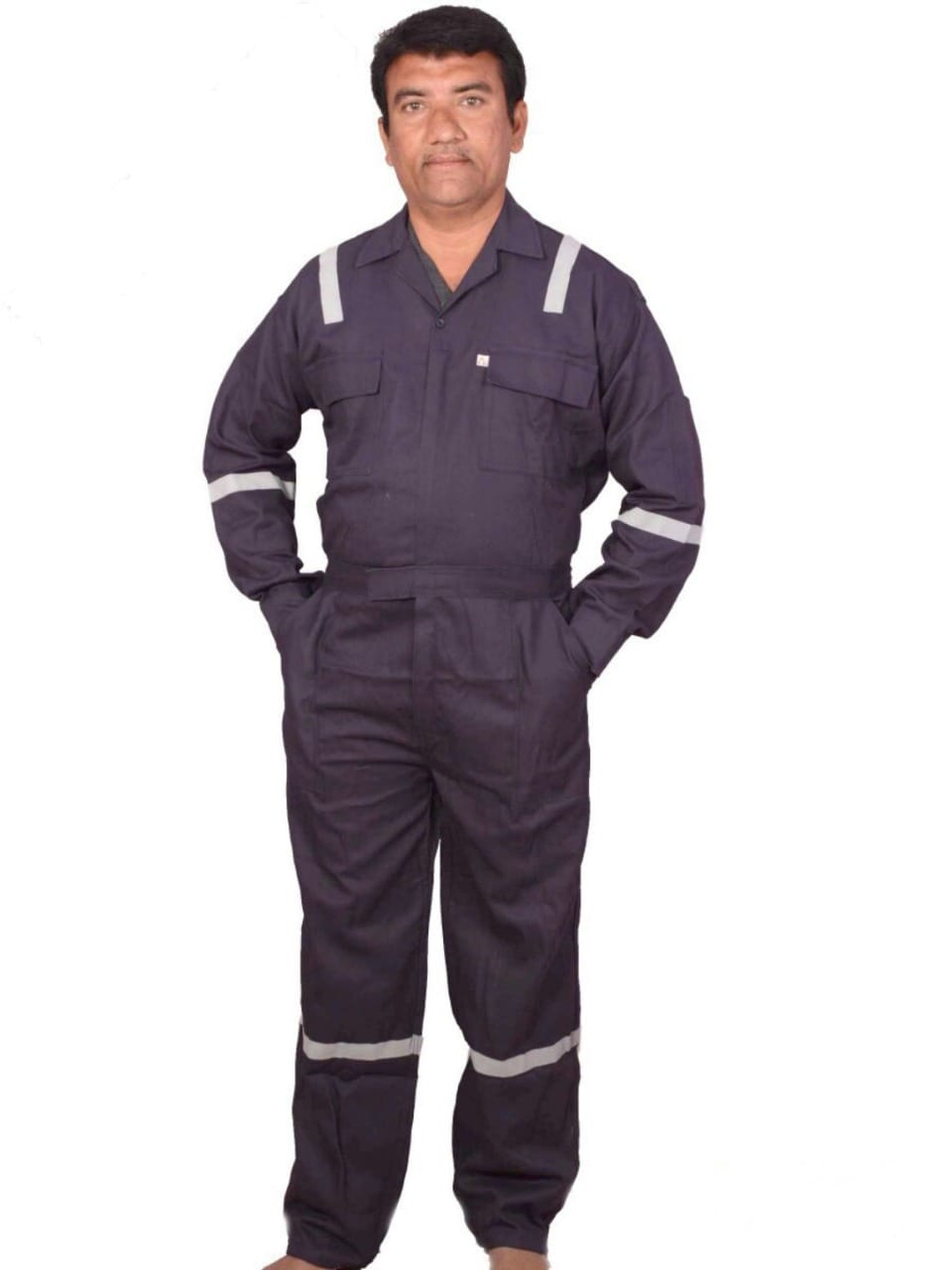 Safety Suit Safety Suits are made from cotton, polyester & mix fabric,Have two front pockets with flap & close with velcro, 1 pen pocket & 2 leg pockets, Good quality 2 Way Zipper, Stitched by a good quality thread.We also make as per your requirements. Safety SuitsSafety Suits